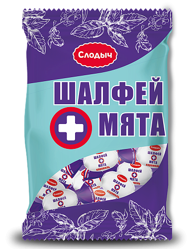 Состав: сахар, патока, ароматизатор натуральный «Мята», экстракт «Шалфея».