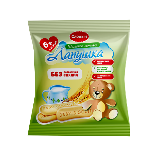 Склад: мука пшанічная найвышэйшага гатунку, сок фруктовы канцэнтраваны, масла салодкасметанковае несалёнае, крухмал кукурузны, алігафруктоза, малако сухое абястлушчанае, экстракт соладавы ячменны светлы, разрыхляльнікі (гідракарбанат амонію, гідракарбанат натрыю), соль ёдаваная (ёдат калію, агент антызлежвальны ферацыянід калію), араматызатар натуральны «Ваніль». Змяшчае цукры прыроднага (натуральнага) паходжання.