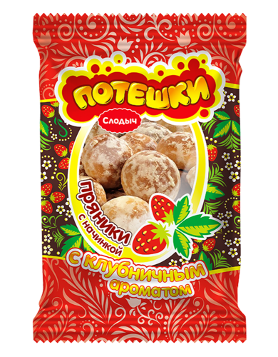 Склад: мука пшанічная першага гатунку, цукар, мёд цукровы янтарны (змяшчае араматызатар «Мёд»), начынка фруктовая (пюрэ яблачнае (змяшчае кансервант: дыяксід серы), цукар, загушчальнік (пекцін), араматызатар «Клубнiца», антыакісляльнік (кіслата лiмонная)), маргарын (алеі рафінаваныя дэзадараваныя, вада, соль харчовая павараная ёдаваная, эмульгатары (лецыцін соевы, (мона- і дiгліцэрыды тлустых кіслот, антыакісляльнік: кіслата лiмонная)), сыроватка малочная сухая, кансервант: сарбат калію, фарбавальнік: бэта-карацiн, араматызатар, антыакісляльнік: канцэнтрат сумесі такаферолаў), жжонка, разрыхляльнікі (гідракарбанат амонія, гідракарбанат натрыю), сухія духі (карыца, гваздзік, перац духмяны, перац чорны).